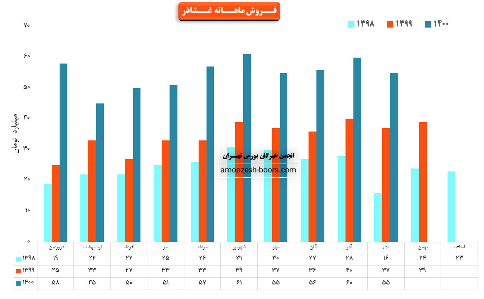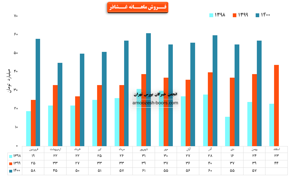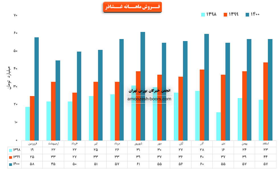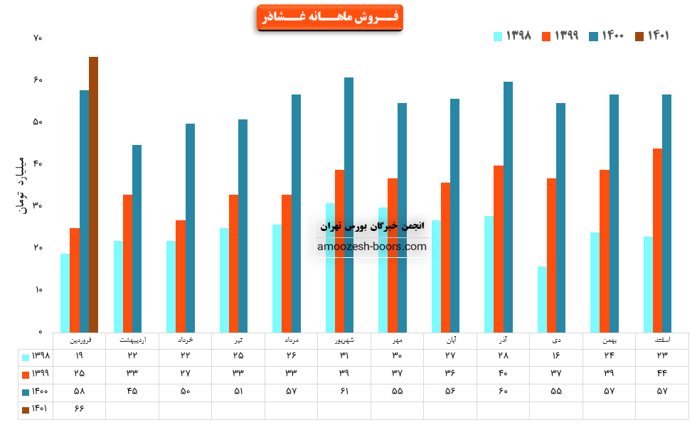 فروش نماد غشاذر: 656 میلیارد تومان که نسبت به دوره مشابه گذشته 54% افزایش یافته است.