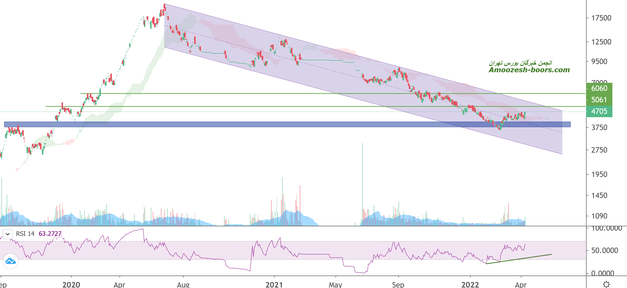 نماد غشاذر بعد از عبور از میدلاین کانال نزولی و در جا زدن روی میدلاین در حال حاضر مقاومت استاتیک و سقف کانال نزولی 5000 ریال را پیش رو دارد در صورت افزایش فشار خرید و شکستن این مقاومت و تثبیت بالای آن مقاومت بعدی 6000 ریال خواهد بود و درصورتی که قیمت وارد فاز اصلاحی شود محدوده حمایتی سهم 4000 ریال در نظر گرفته خواهد شد.