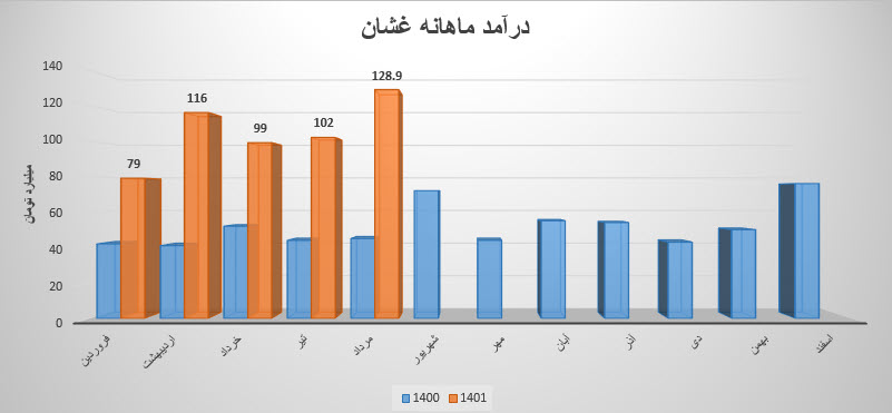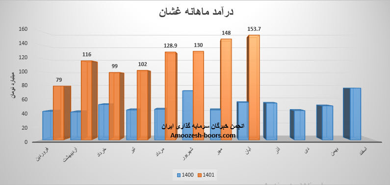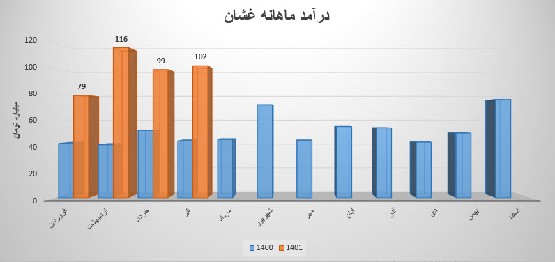 مجموع درآمد نماد غشان طی عملکرد 8 ماهه نسبت به مدت مشابه سال قبل 139% رشد داشته است.