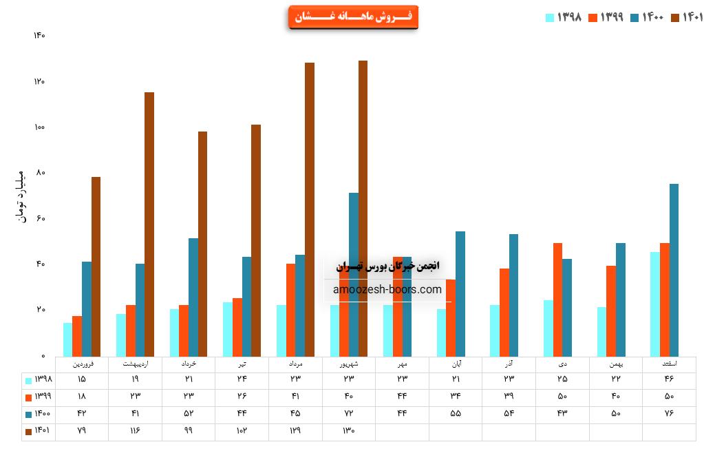 فروش نماد غشان: 646 میلیارد تومان که نسبت به دوره مشابه گذشته 118% افزایش یافته است.