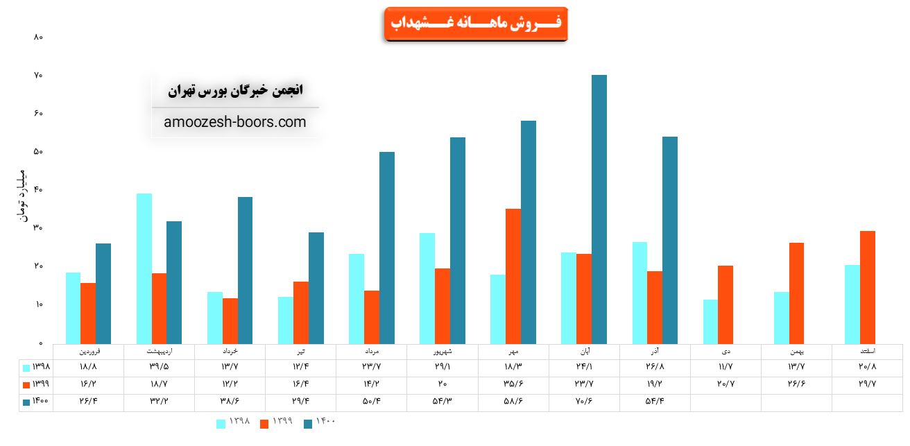 سهم غشهداب در خصوص فروش 6 ماهه دوم سال 1400 مبلغ 239 میلیارد تومان پیشبینی فروش داشته است که در مقایسه با فروش 6 ماهه نخست سال 1400 رشد 4 درصدی فروش پیشبینی شده است