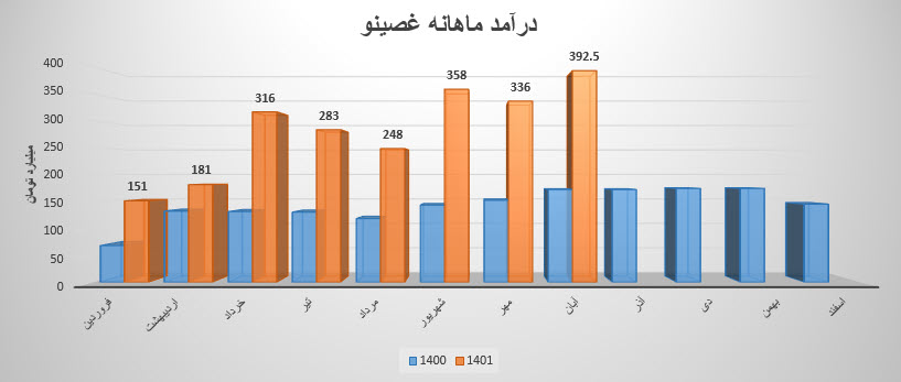 تغییرات درآمد سهم غصینو در نهمین ماه از سال مالی به شرح زیر می باشد :