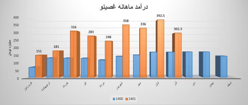همچنین غصینو با ثبت فروش 1538 میلیارد تومانی در پایان شش ماهه ابتدایی سال توانست حدود 55% از پیشبینی فروش سالانه خود را محقق سازد