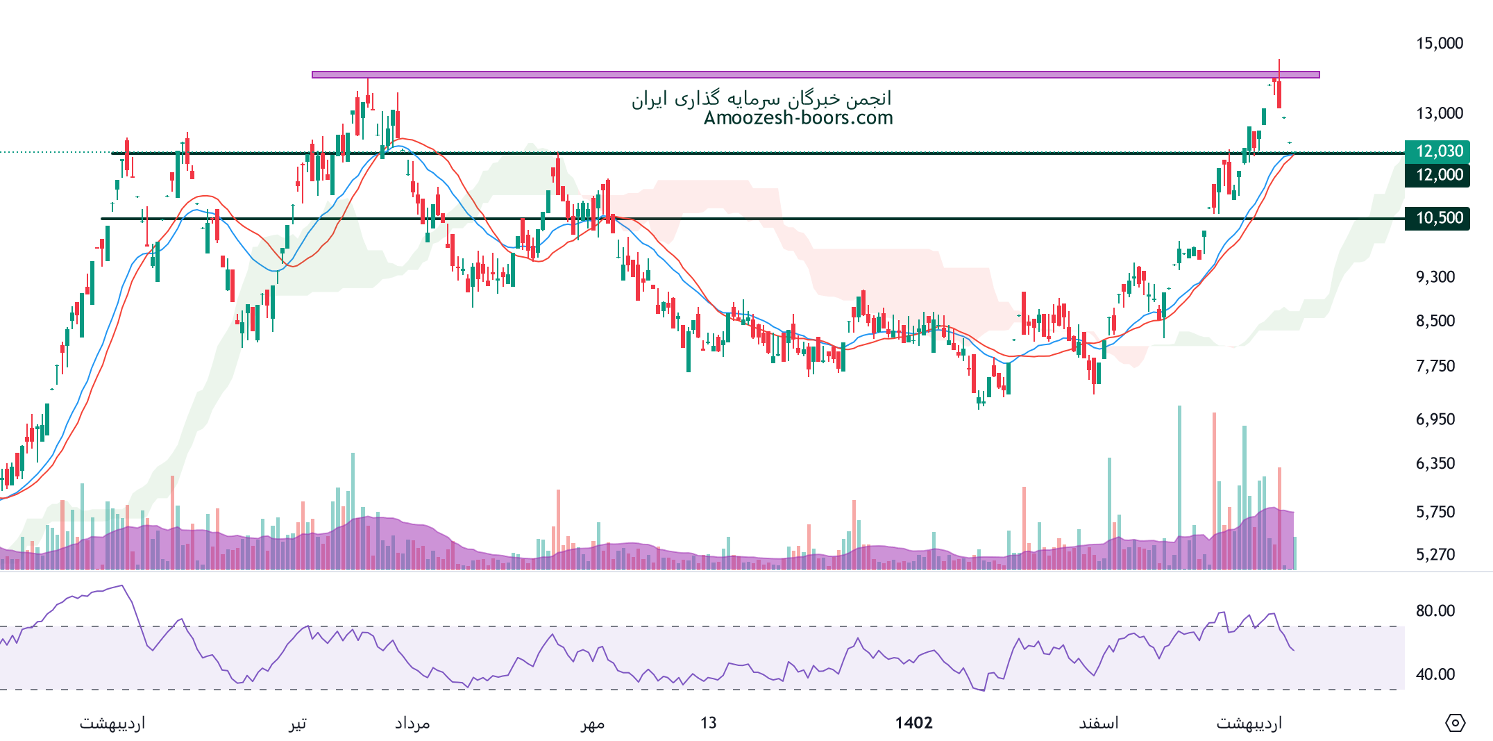 با توجه به نزدیک شدن قیمت به محدوده مقاومتی ذکر شده، پیشنهاد میشود رفتار قیمت را زیر نظر داشته باشید.
