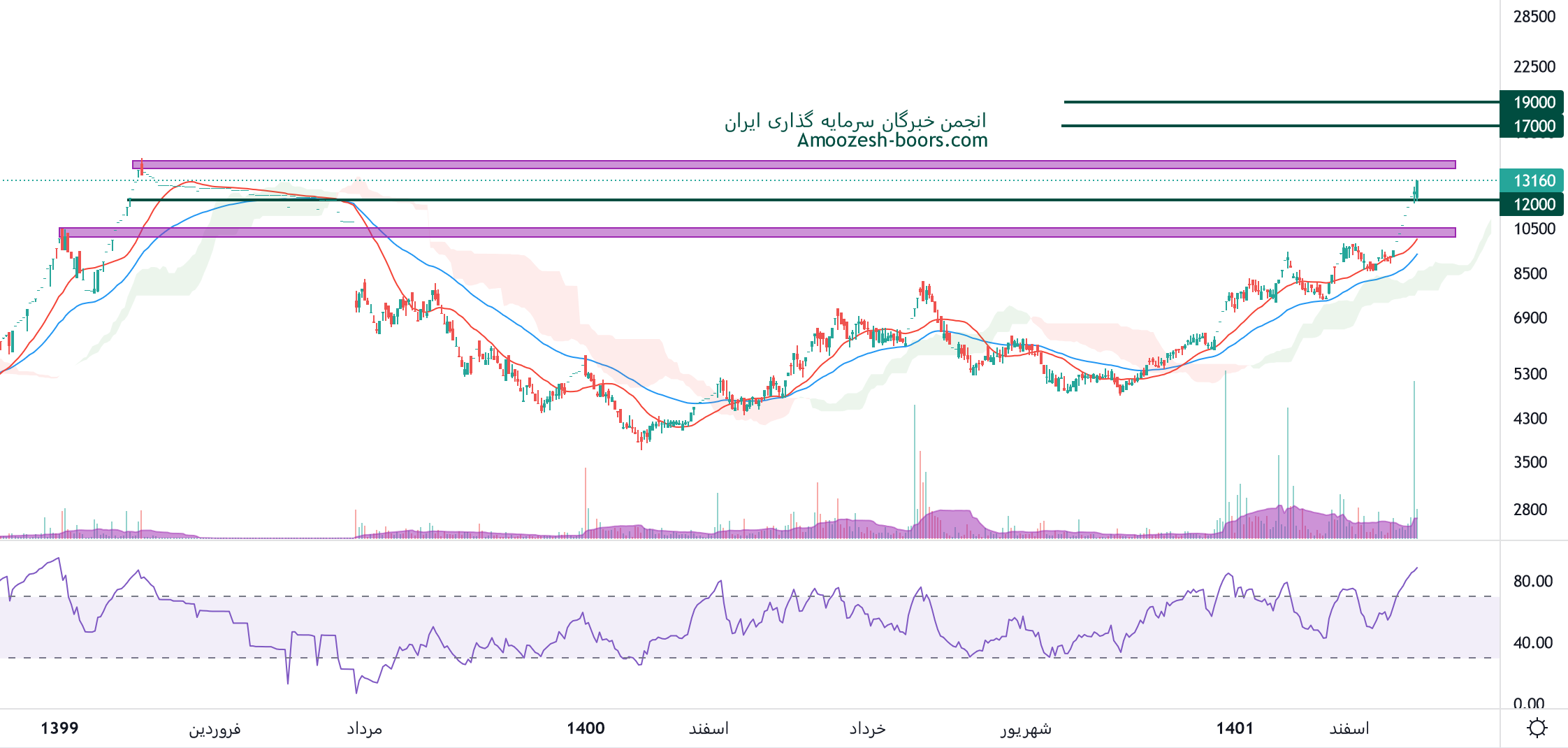 نماد غمهرا به محدوده مقاومتی سقف تاریخی در قیمت 14000 ریال رسیده، 17000 ریال مقاومت بعدی در نظر گرفته خواهد شد، همچنین حمایت سهم 12000 ریال ارزیابی میگردد.