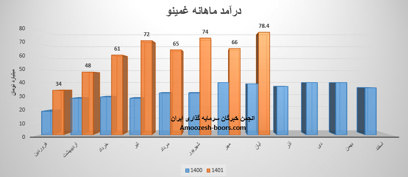 مجموع درآمد غمینو طی عملکرد 8 ماهه نسبت به مدت مشابه سال قبل 102% رشد داشته است.