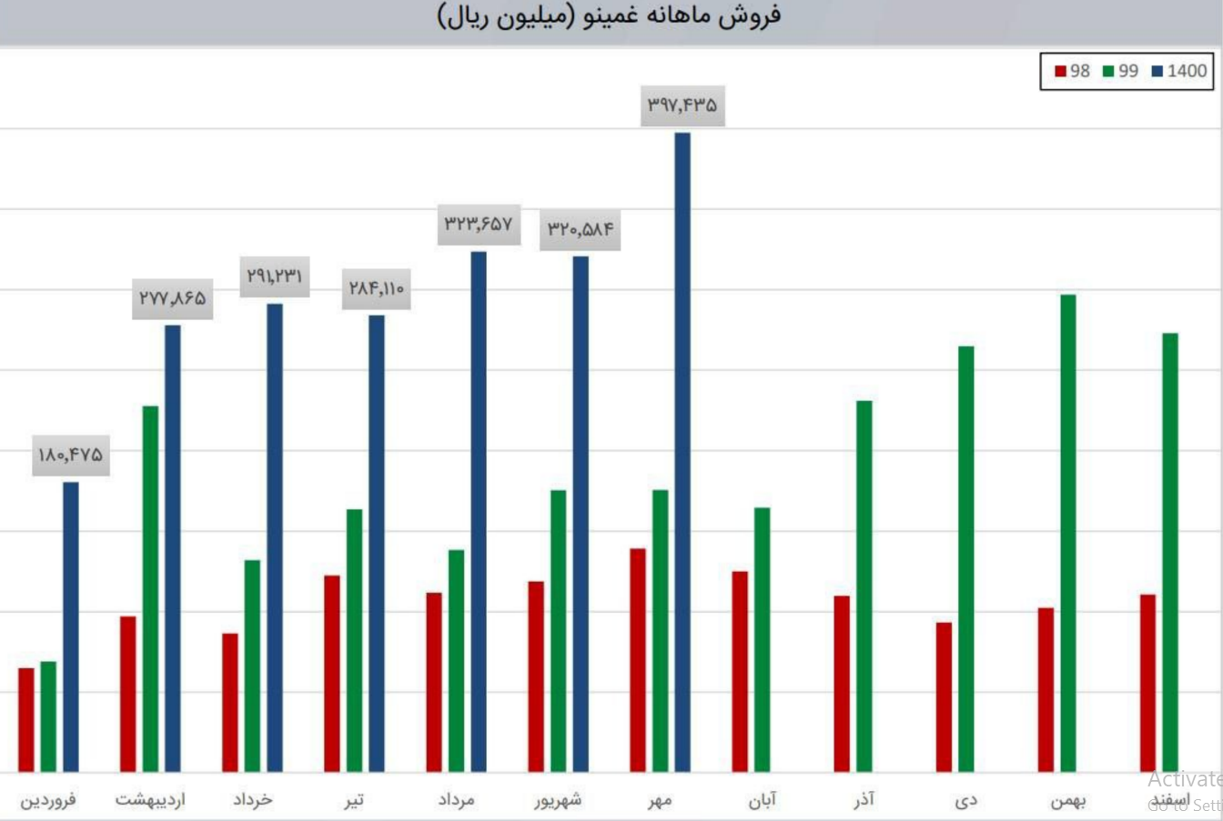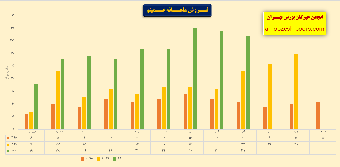 نماد غمینو در مهر 397 ، شهریور 320 ، مرداد 323 میلیارد ریال فروش داشت