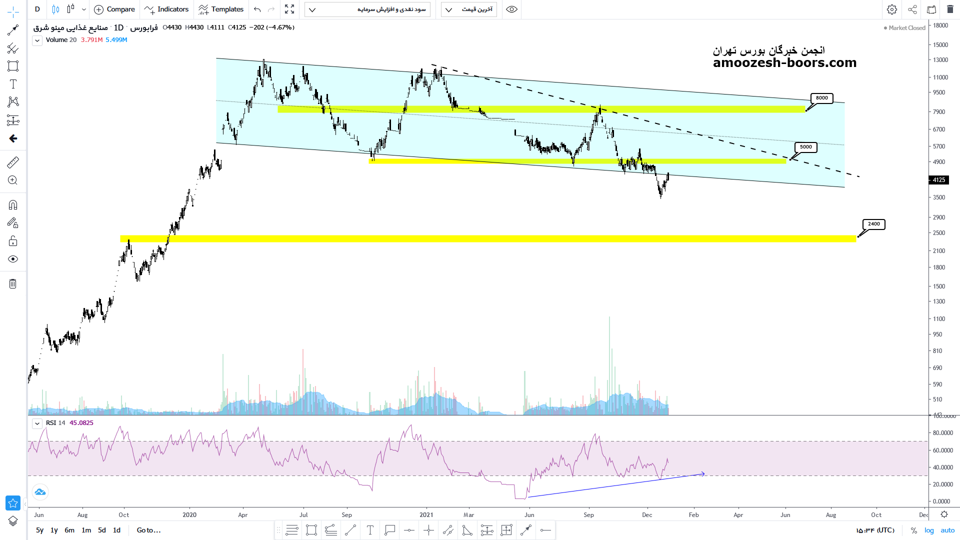 درصورت تایید پولبک انتظار ریزش بیشتر تا محدوده حمایتی 240 از سهم میرود ولی اما درصورت برگشت قیمت به درون کانال میتواند تا قیمت 500 و حتی درصورت شکست این محدوده تا مقاومت خط روند نزولی خود و میدلاین کانال یعنی محدوده 640 صعودی داشته باشد