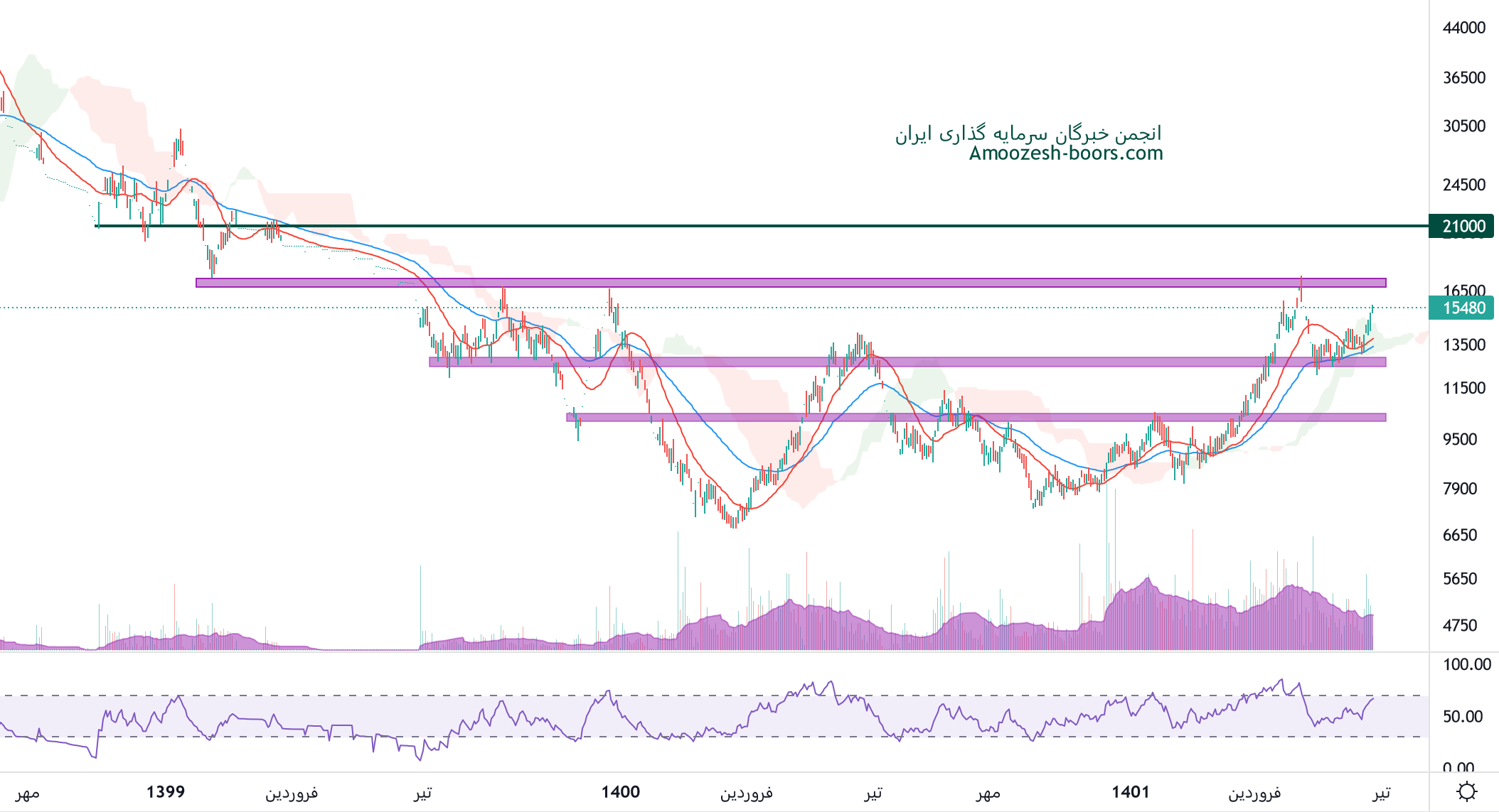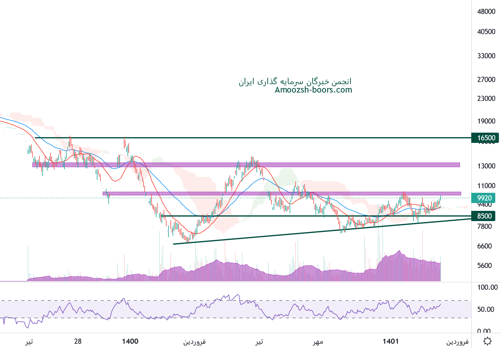 قیمت غنوش با گارد صعودی که به خود گرفته به سطح مقاومتی 13000 ریال نزدیک شده است، در صورتی که قیمت موفق به عبور از این مقاومت شود، محدوده مقاومت بعدی غنوش 15500 ریال در نظر گرفته خواهد شد، همچنین در صورت ورود قیمت به فاز اصلاحی، اولین حمایت غنوش 11500 ریال ارزیابی خواهد شد.