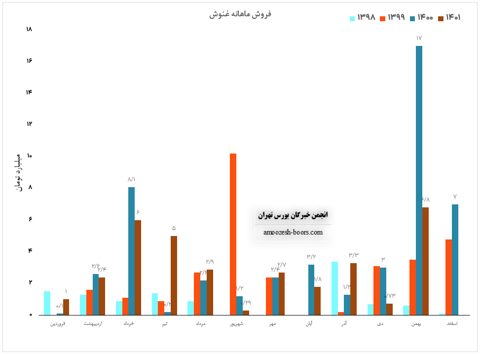 نماد غنوش (شرکت نوش مازندران) در بهمن ماه 1401 حدود مبلغ 7 میلیارد تومان درآمد داشته که این میزان در مقایسه با ماه گذشته 832% و همچنین در مقایسه با مدت مشابه سال گذشته 60% کاهش درآمد پیدا کرده است.