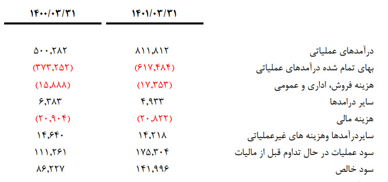 همچنین مجموعا در فصل بهار خود به ازای هر سهم 221 ریال سود محقق کرده است که نسبت به دوره مشابه سال قبل (65%) افزایش داشته است.