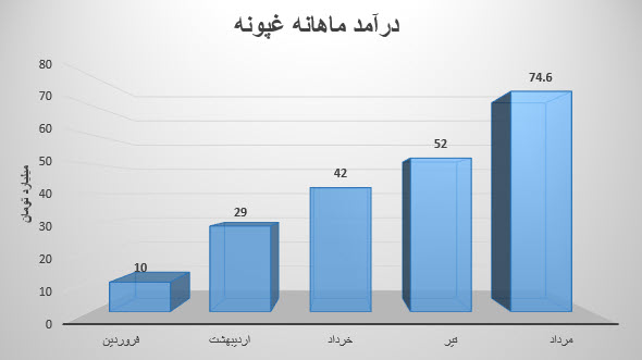 نماد غپونه در تیر ماه معادل 52.3 میلیارد تومان درآمد داشته که نسبت به ماه قبل 25% افزایش و نسبت به میانگین ماه های قبل 93% افزایش داشته است.