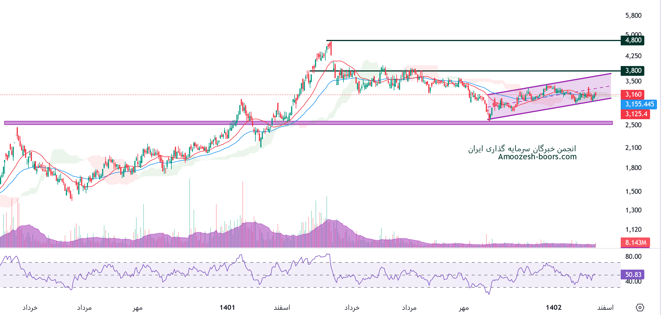 در صورت متعادل شدن جو بازار قیمت پتانسیل برگشت داشته که در این صورت مقاومت های غپینو به ترتیب 3800 و 4800 ریال در نظر گرفته خواهند شد.