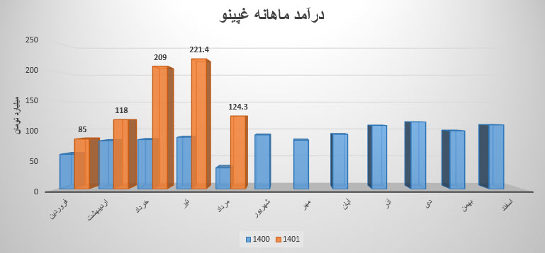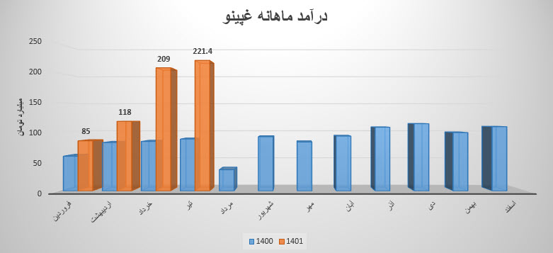 درآمد سهم غپینو نسبت به ماه قبل درصد 44 و نسبت به میانگین ماهانه 22 درصد کاهش داشته است .