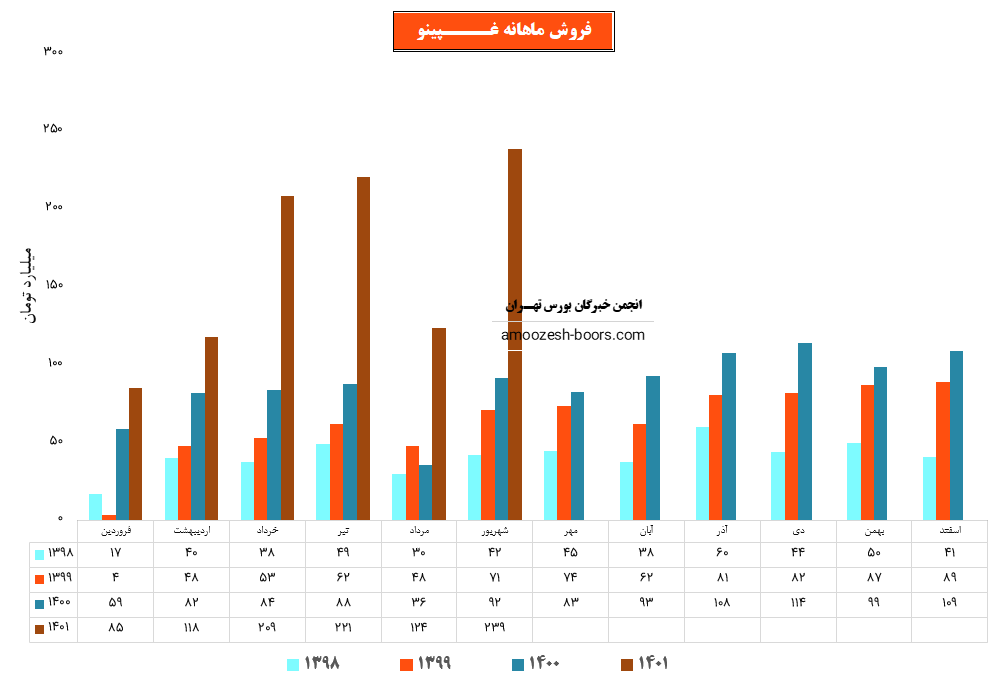فروش نماد غپینو: 1281 میلیارد تومان که نسبت به دوره مشابه گذشته 38% افزایش یافته است.