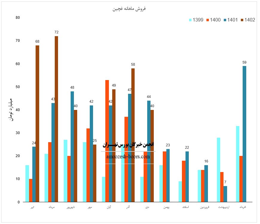 همچنین سهم غچین با ثبت فروش 301 میلیارد تومانی در پایان شش ماهه ابتدایی سال توانست حدود 58% از پیشبینی فروش سالانه خود را محقق سازد