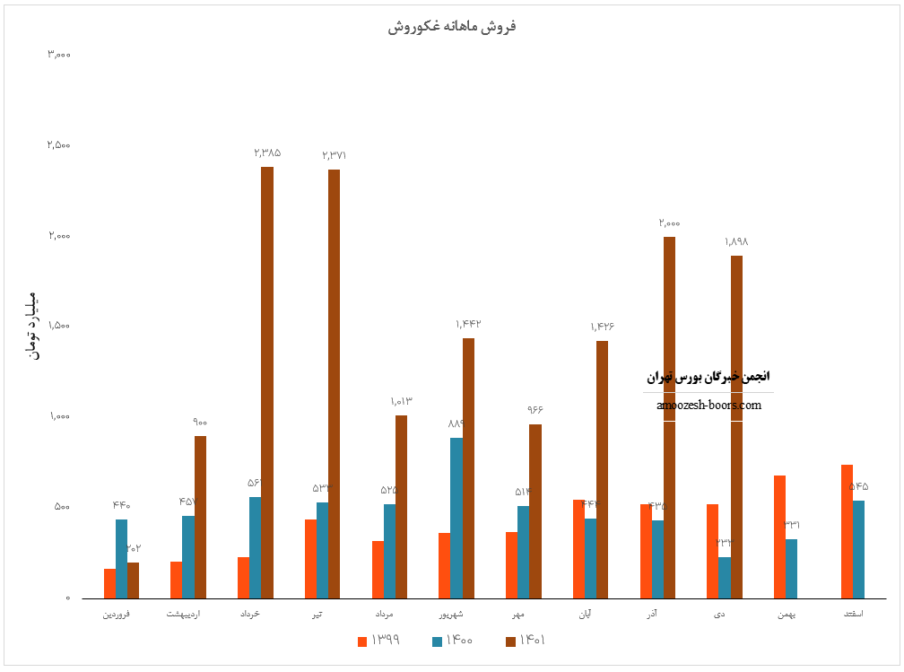 سهم غکوروش در دی ماه حدود بیش از 36300 تن از محصولات خود را به فروش رسانده که این میزان در مقایسه با حجم فروش ماه گذشته خود حدود 13% رشد پیدا کرده است.
