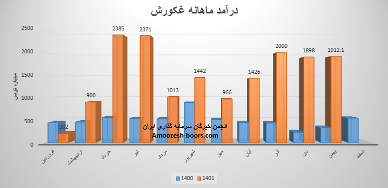 نماد غکورش با تکرار درآمد ماه گذشته به رقم 1912.1 میلیارد تومانی دست یافته است . درآمد بهمن ماه سهم غکورش نسبت به متوسط ماهانه 31 درصد و نسبت به مدت مشابه 478 درصد افزایش را تجربه نموده است .
