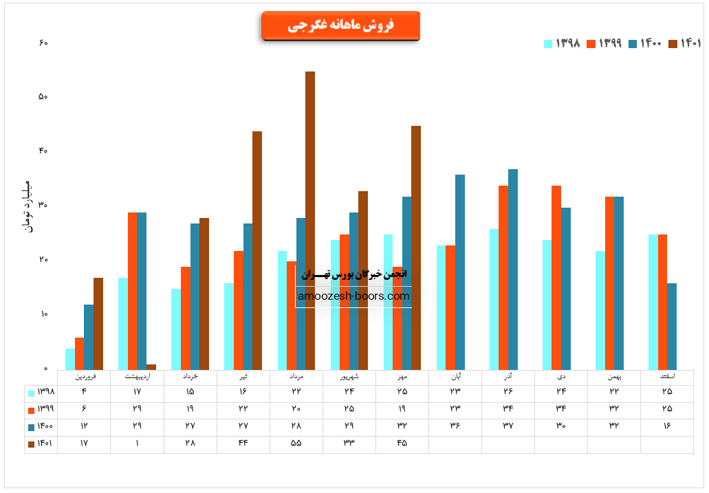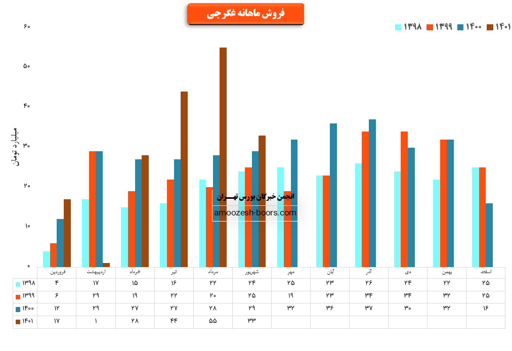 فروش نماد غگرجی: 46 میلیارد تومان که نسبت به دوره مشابه گذشته 33% کــــاهش یافته است.