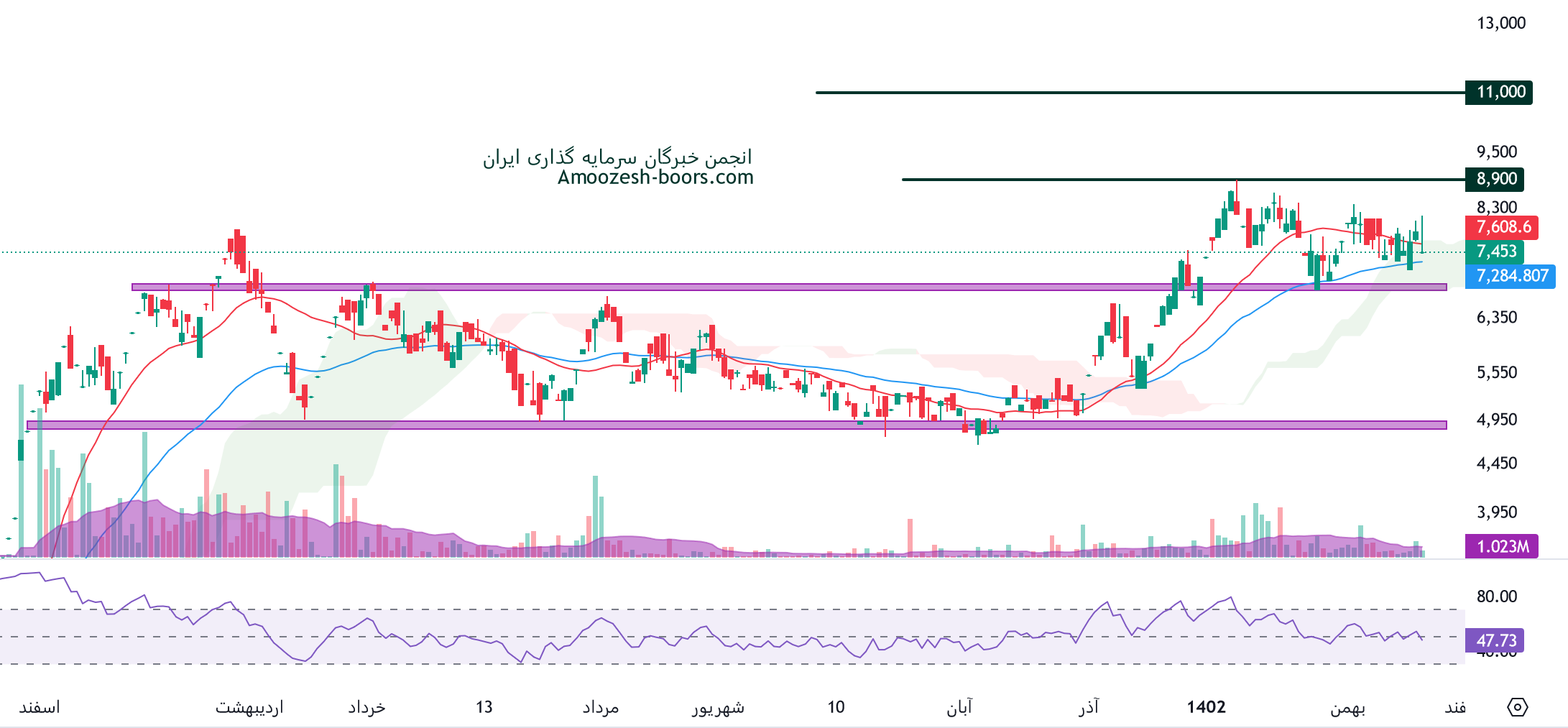 با توجه به سقف و کف ساخته شده در نمودار شکلر انتظار نوسانات کوتاه مدت در این سطح میرود، و با توجه به جو بازار انتظار حرکات شارپی و بلند نمیرود.