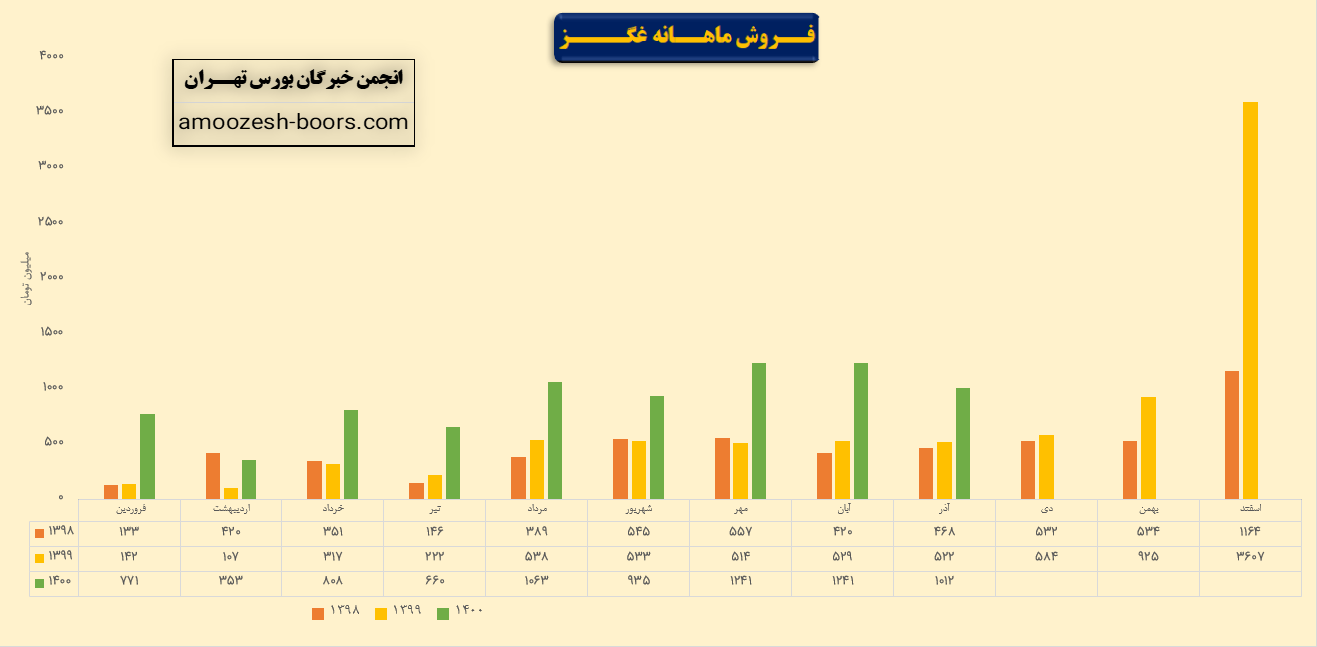 فروش نماد غگز: 8 میلیارد تومان که نسبت به دوره مشابه گذشته 148% افزایش یافته است.