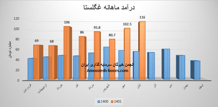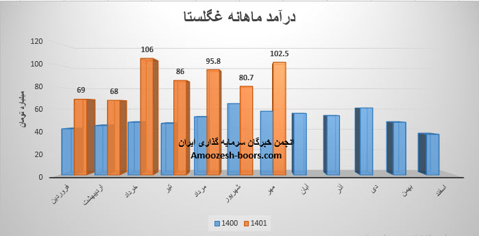 مجموع درآمد نماد غگلستا طی عملکرد 7 ماهه نسبت به مدت مشابه سال قبل 67% رشد داشته است.