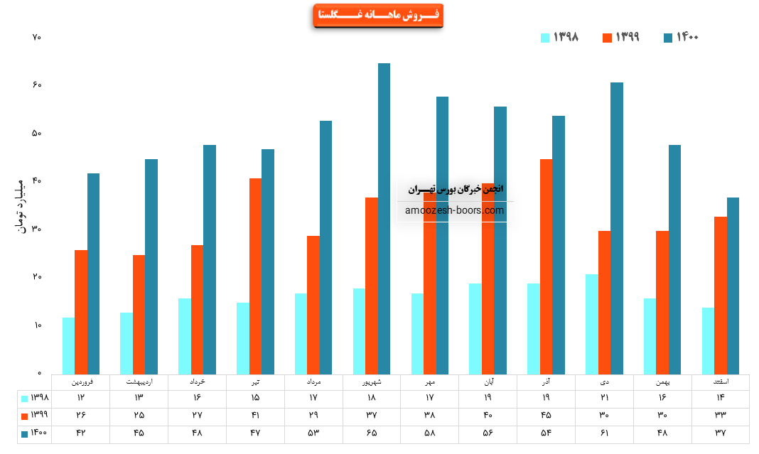 فروش سهم غگلستا: 469 میلیارد تومان که نسبت به دوره مشابه گذشته 53% افزایش یافته است.