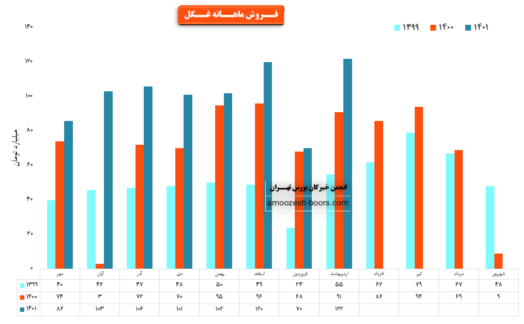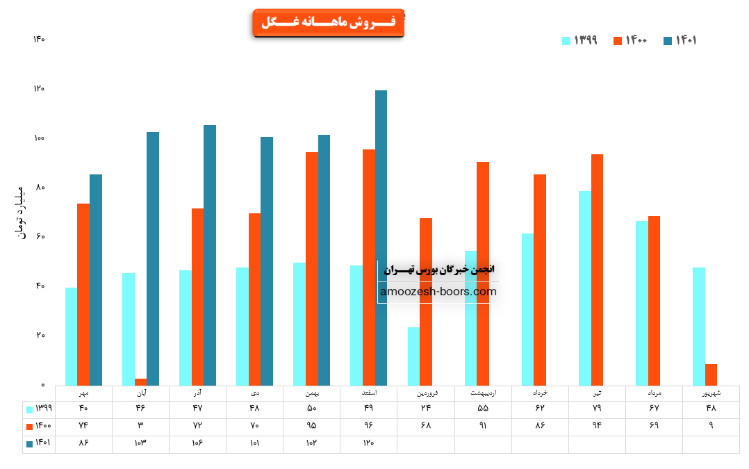 نماد غگل در فروردین ماه حدود بیش از 4 هزار تن از محصولات خود را به فروش رسانده که این میزان در مقایسه با حجم فروش ماه گذشته خود حدود 53% کاهش پیدا کرده است.