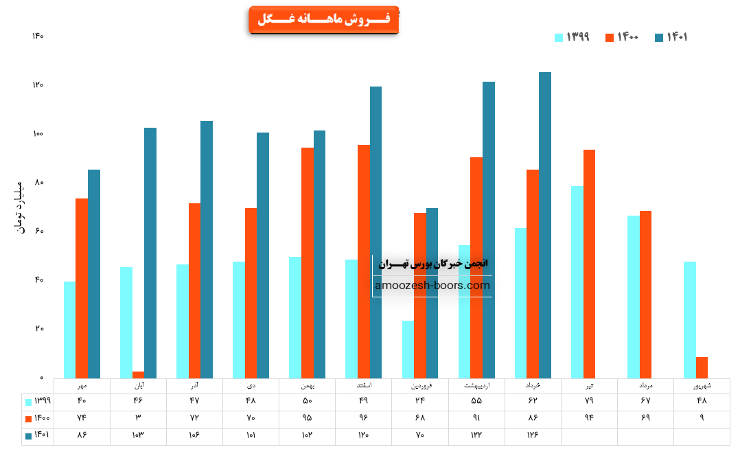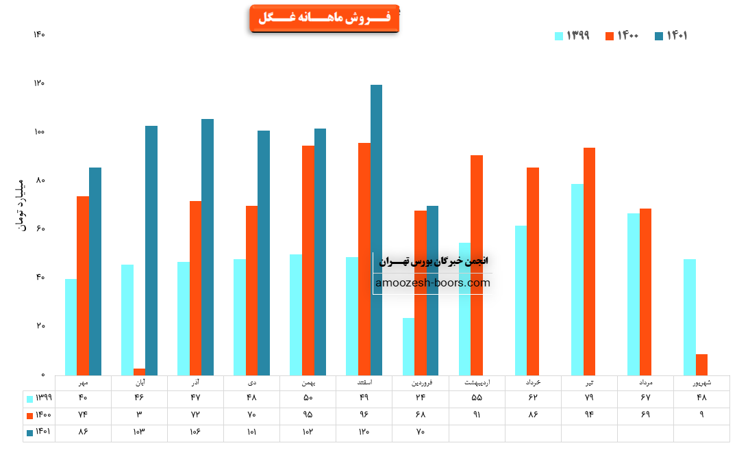 نماد غگل در خرداد ماه حدود بیش از 5600 تن از محصولات خود را به فروش رسانده که این میزان در مقایسه با حجم فروش ماه گذشته خود حدود 7% کاهش پیدا کرده است.