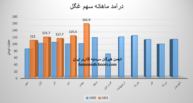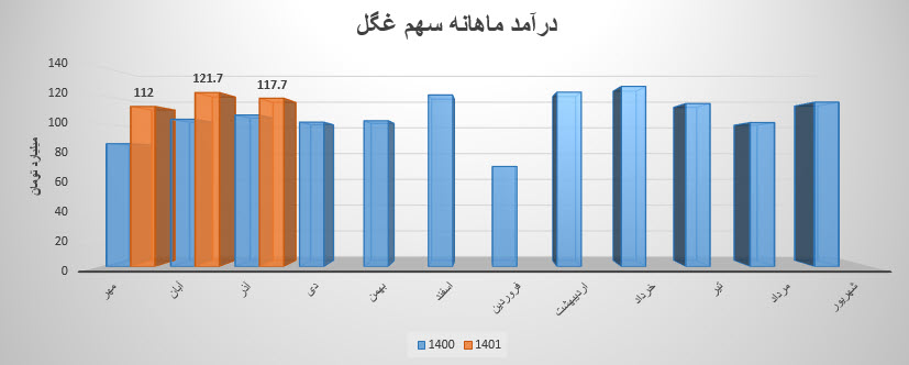 همچنین سهم غگل با ثبت فروش 351 میلیارد تومانی در پایان سه ماهه ابتدایی سال مالی خود توانست حدود 14% از پیش بینی فروش سالانه خود را محقق سازند