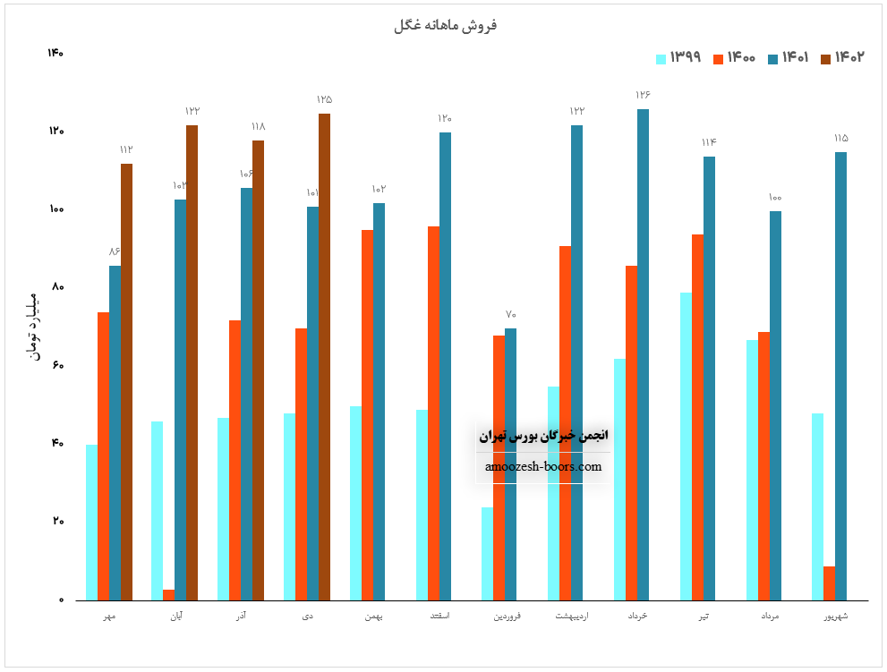 نماد غگل در دی ماه حدود بیش از 7000 تن از محصولات خود را به فروش رسانده که این میزان در مقایسه با حجم فروش ماه گذشته خود حدود 24% رشد پیدا کرده است.