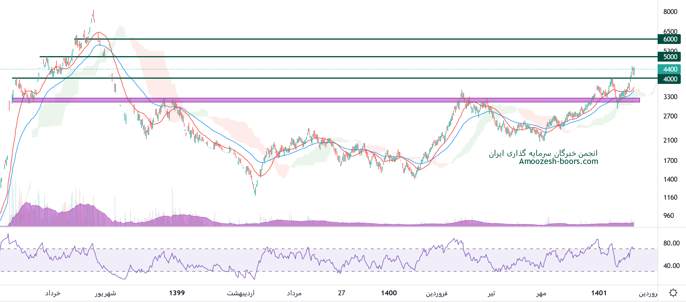 نماد غگل که موفق به شکست محدوده مقاومتی مهم 4000 ریال شده، به ترتیب تارگت 5000 و 6000 ریال را دارا میباشد، در صورت از دست رفتن محدوده حمایتی 4000 ریال، حمایت مهم سهم 3200 ریال ارزیابی میگردد.