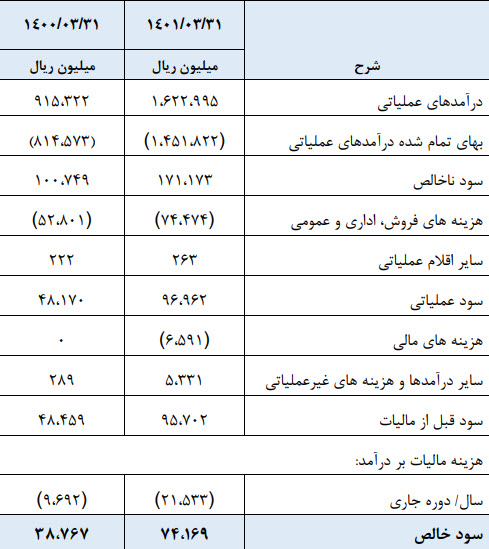 سود ناخالـص: 62 میلیارد تومان که نسبت به دوره مشابه گذشته 200% افزایش یافته است.