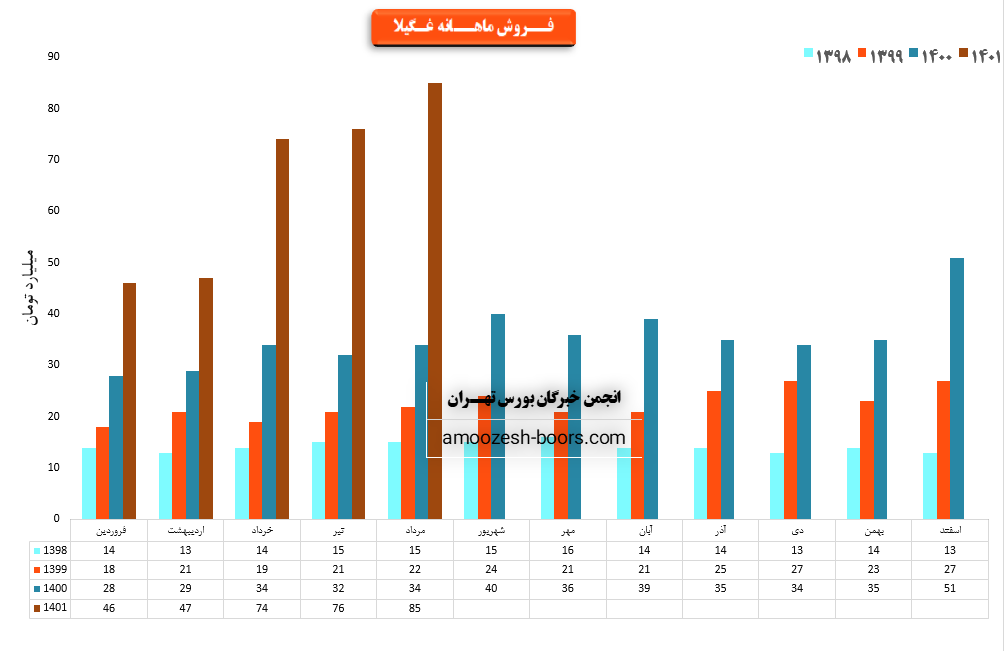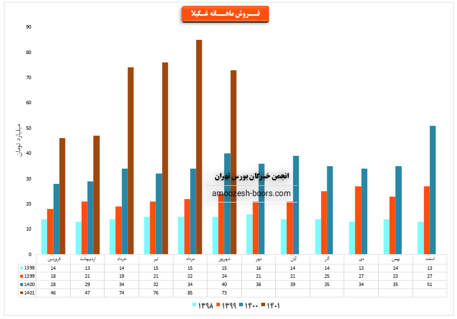 فروش نماد غگیلا: 397 میلیارد تومان که نسبت به دوره مشابه گذشته 100% افزایش یافته است.