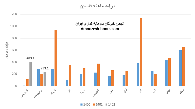 سهم فاسمین (شرکت کالسیمین) در تیر ماه 1402 موفق به ثبت فروش 912 میلیارد تومانی شده است. لازم به ذکر است که درآمد این ماه نسبت به ماه گذشته رشد 126 درصدی همچنین و نسبت به مدت مشابه سال گذشته رشد 164 درصدی را تجربه کرده است.
