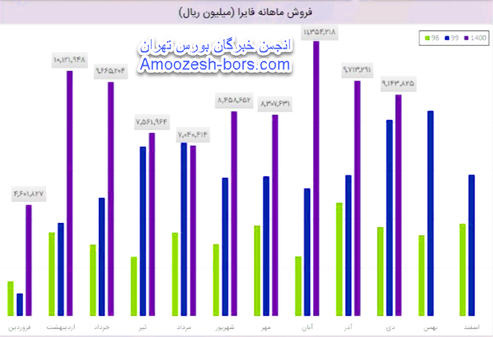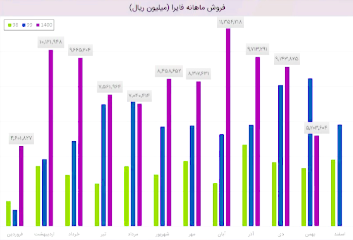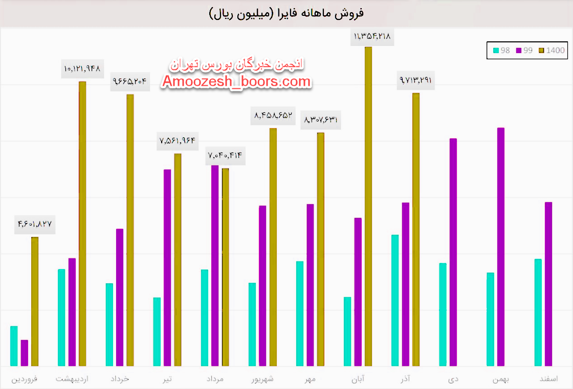 فایرا باوجود کاهش فروش افزایش سودآوری داشته، طی عملکرد 1 ماهه منتهی به 1400/08/30 معادل 11,354,218 میلیون ریال از محصولات خود را به فروش رسانده که نسبت به دوره 1 ماهه مشابه سال قبل 115% افزایش داشته است.همچنین گزارش ماهانه فایرا از نظر مقداری نشان میدهد که در آبان 1400 موفق به فروش 16,533 تن محصول شده است که نسبت به ماه گذشته رشد 45 درصدی داشته است.