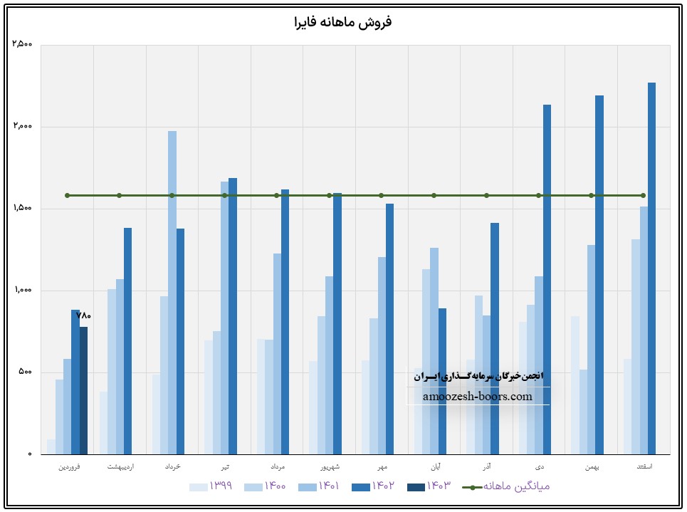 نماد فایرا در فروردین ماه حدود بیش از 6200 تن از محصولات خود را به فروش رسانده که این میزان در مقایسه با حجم فروش ماه گذشته حدود 47% کاهش پیدا کرده است.