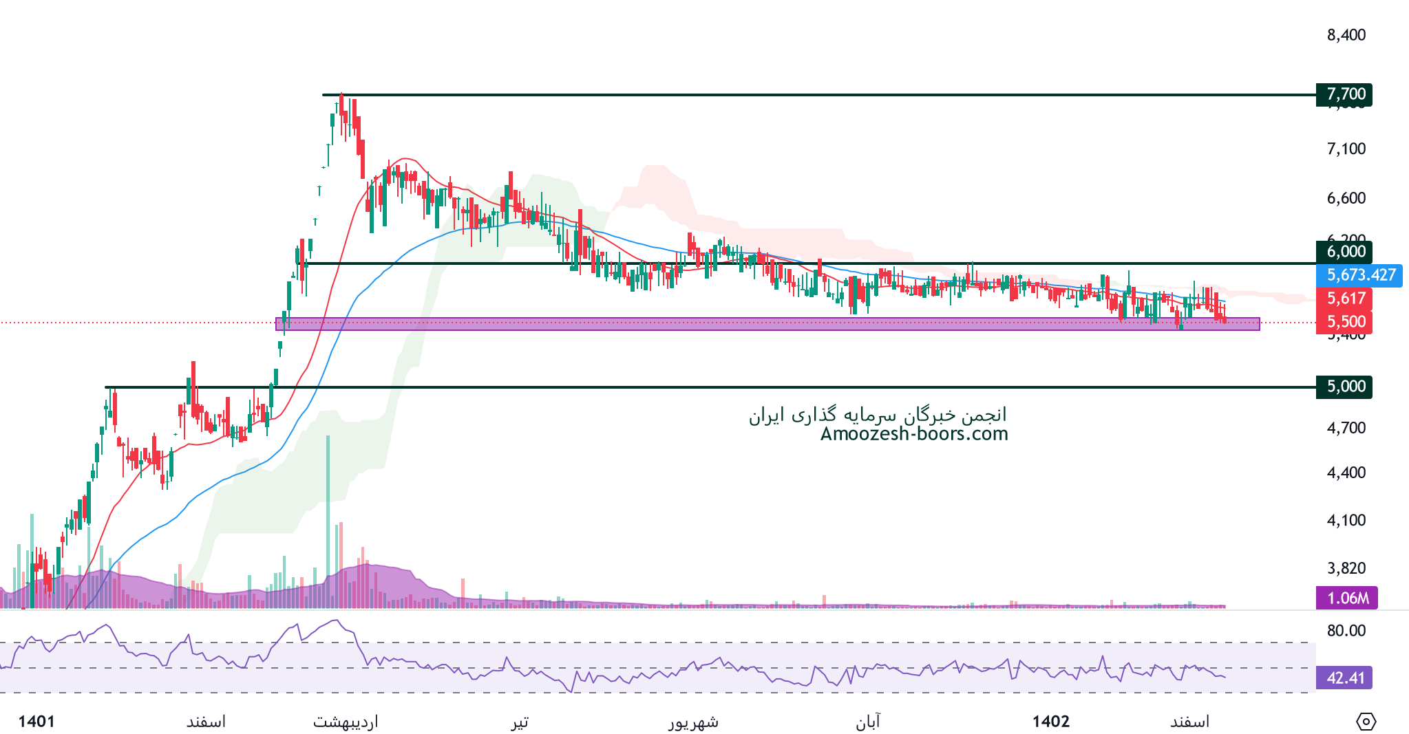 همانطور که در تحلیل تکنیکال فایرا میبینیم قیمت در محدوده حمایتی 5400 ریال و محدوده مقاومتی 6000 ریال در حال نوسان میباشد.