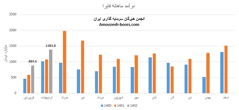 نماد فایرا (شرکت آلومینیوم ایران) در تیر ماه 1402 حدود مبلغ 1688میلیارد تومان درآمد داشته که این میزان در مقایسه با ماه گذشته 22% و همچنین در مقایسه با مدت مشابه سال گذشته 1% رشد درآمد پیدا کرده است. نماد فایرا در تیر ماه حدود بیش از 17300 تن از محصولات خود را به فروش رسانده که این میزان در مقایسه با حجم فروش ماه گذشته حدود 41% رشد پیدا کرده است. سهم فایرا 564 میلیارد تومان از محصولات این ماه را در بازار خارج از کشور به فروش رسانده است. همچنین از پرفروش ترین محصولات فایرا در تیر ماه می توان به شمش خالص فروش بازار داخل با سهم 1014 میلیارد تومان اشاره کرد که به عنوان پرفروش ترین محصول این شرکت در این ماه شناخته شده است.