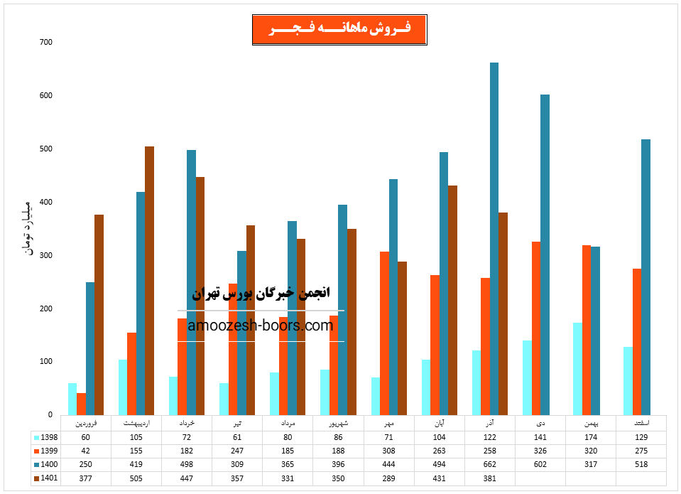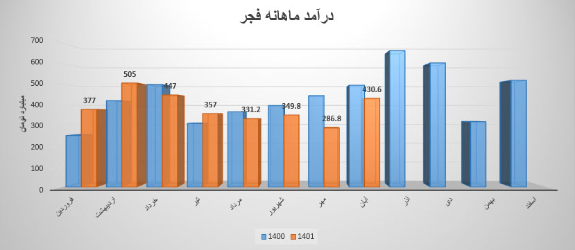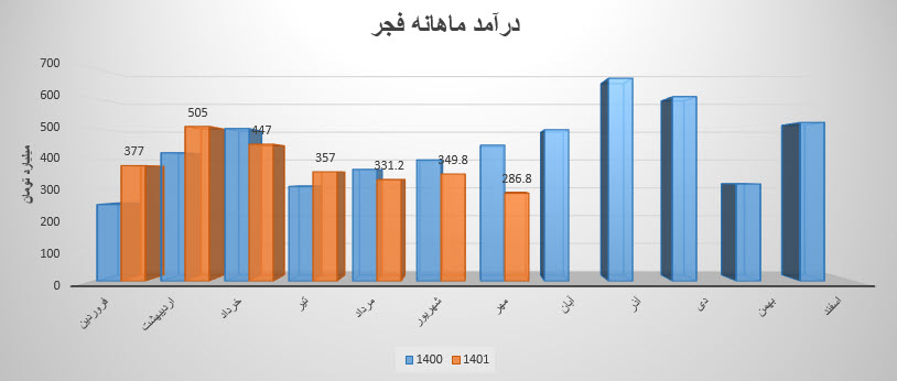 فجر در گزارش عملکرد آبان ماه خود معادل 430.6 میلیارد تومان درآمد را محقق نموده که این رقم نسبت به دوره 1 ماهه مشابه سال قبل 13% کاهش داشته است.