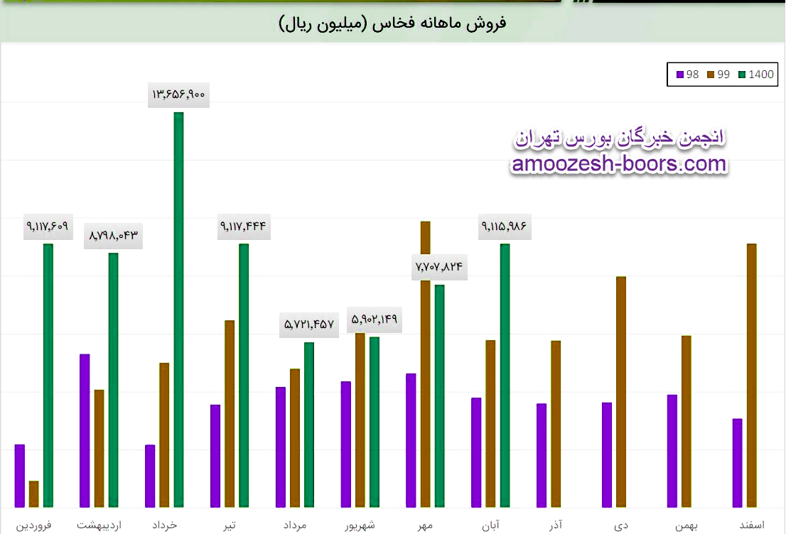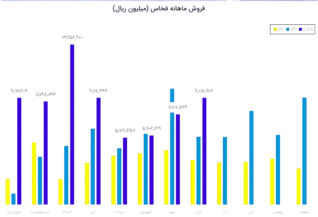 فخاس در آذر 1400 مبلغ 755 میلیارد تومان درامد داشته که این میزان نسبت به ماه گذشته 17% افت و همچنین نسبت به مدت مشابه سال گذشته 31% رشد پیدا کرده است!