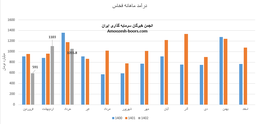 نماد فخاس (مجتمع فولاد خراسان) در تیر ماه 1402 حدود مبلغ 1332 میلیارد تومان درآمد داشته که این میزان در مقایسه با ماه گذشته و همچنین در مقایسه با مدت مشابه سال گذشته به ترتیب 63% و 99% افزایش درآمد پیدا کرده است. نماد فخاس در تیر ماه حدود 82000 تن از محصولات خود را به فروش رسانده که این میزان در مقایسه با حجم فروش ماه گذشته 78 درصد افزایش پیدا کرده است. از پرفروش ترین محصولات فخاس در تیر ماه میتوان به انواع محصولات سبک ساختمانی با سهم 791 میلیارد تومان اشاره کرد.