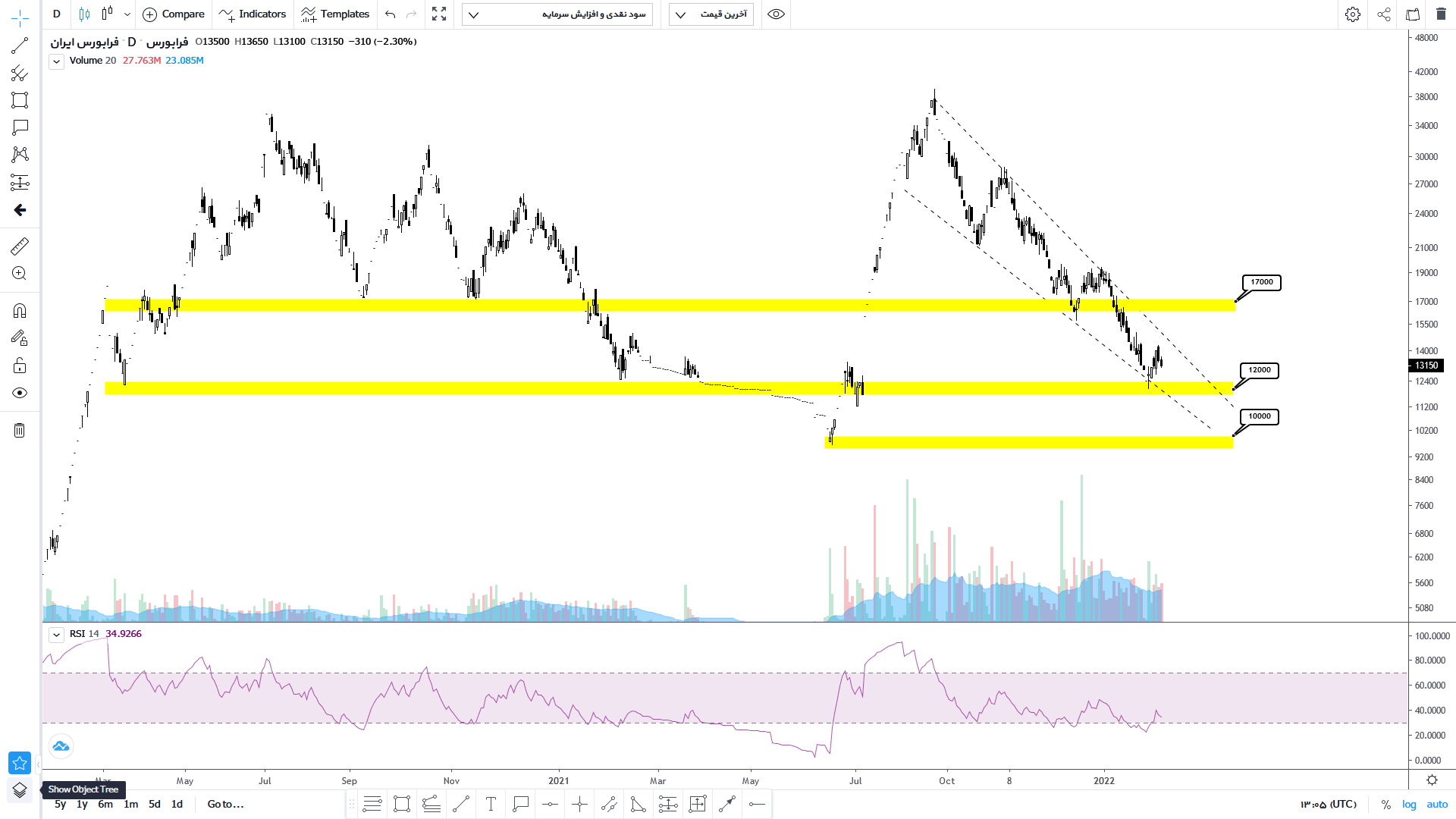 درصورتیکه قیمت بتواند از سقف الگوی اصلاحی خود و با شکست مقاومت خط روند نزولی خارج شود می تواند تا محدوده 1700 تومان نیز صعود خود را ادامه دهد