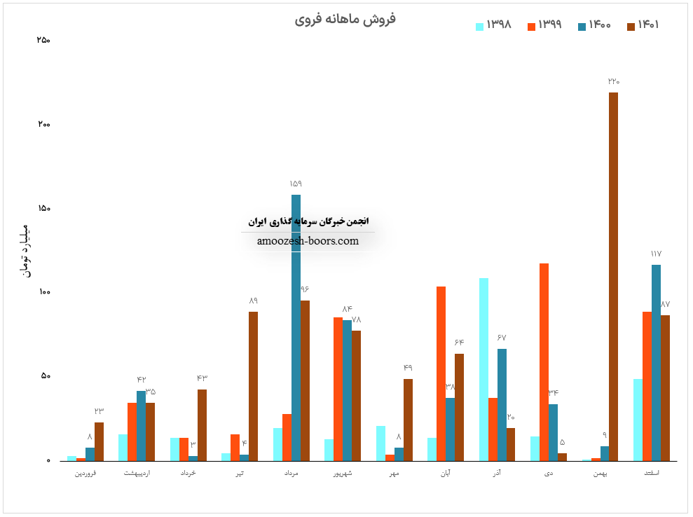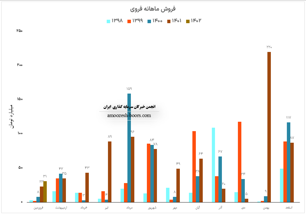 همچنین نماد فروی با ثبت فروش 810 میلیارد تومانی در انتهای 12 ماهه سال مالی 1401 توانست حدود 2 درصد بیشتر از پیشبینی فروش سالانه خود را محقق سازد.