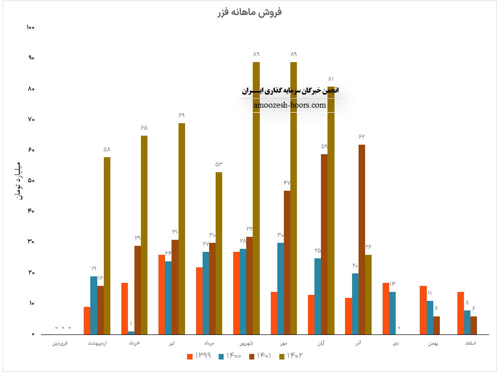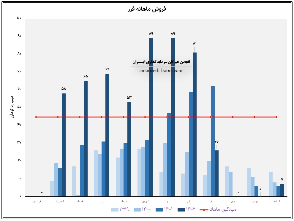 درآمد آبان ماه سال 1402 سهم فزر 81.9 میلیارد تومان بوده است که در مقایسه با ماه گذشته 8% افت داشته است.
