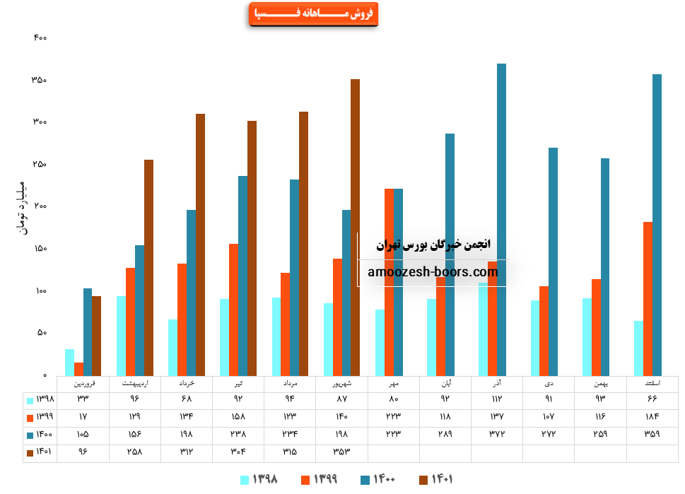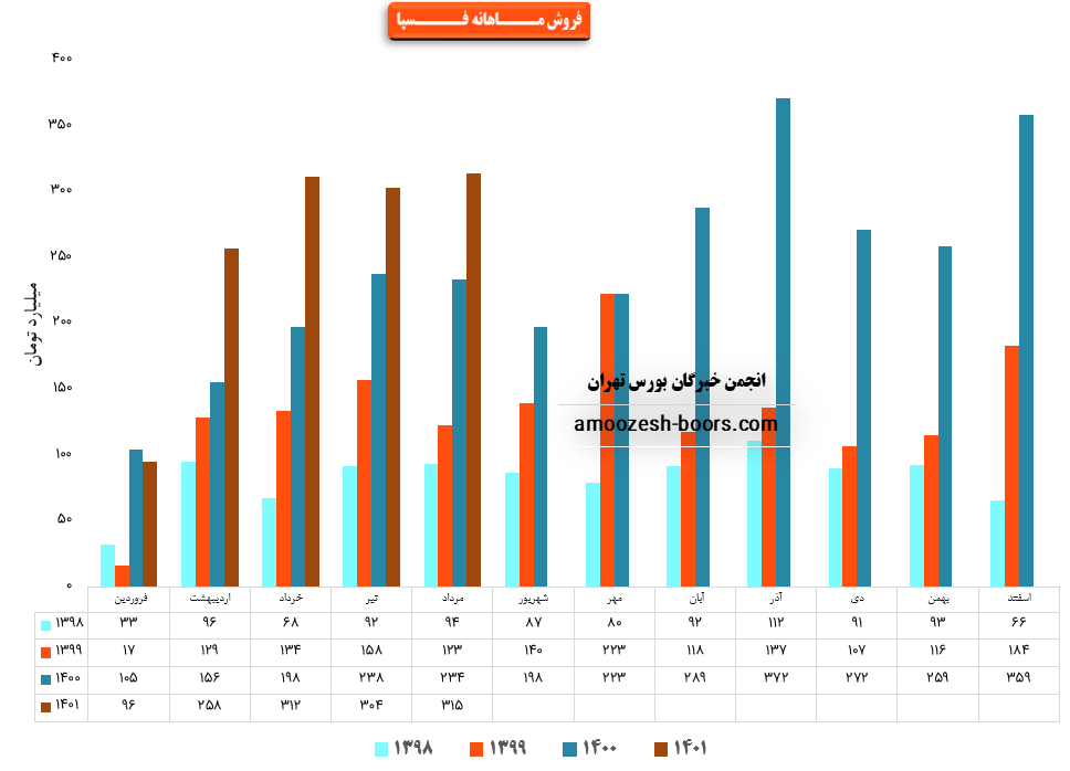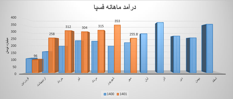 لازم به ذکر است نماد فسپا با ثبت فروش حدود ۶۵۶ میلیارد تومانی در پایان سه ماهه ابتدایی سال ۱۴۰۱ توانست حدود ۱۸ % از پیش بینی فروش سالانه خود را محقق سازد.