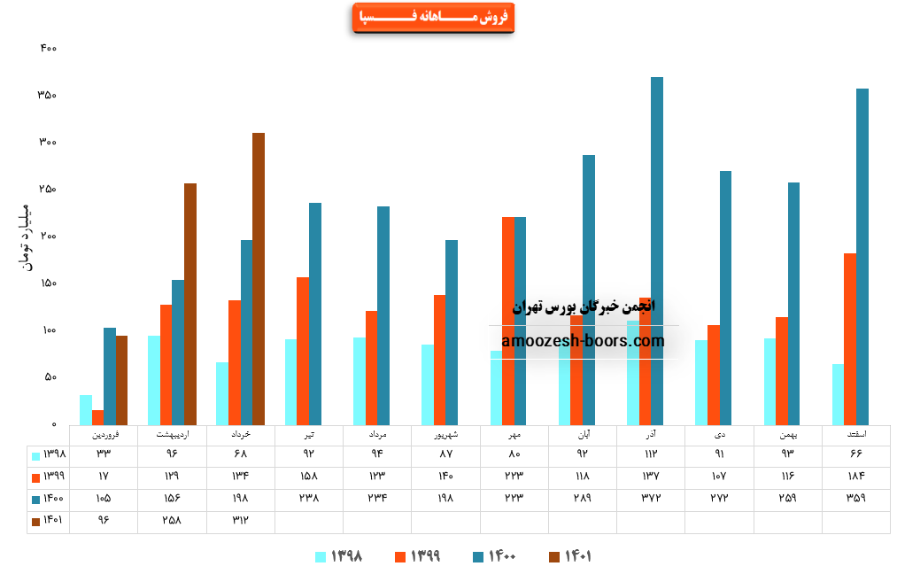 شرکت گروه صنعتی سپاهان با نماد فسپا در خرداد ماه ۱۴۰1 حدود مبلغ 312 میلیارد تومان درآمد داشته که این میزان در مقایسه با ماه گذشته 21% و همچنین در مقایسه با مدت مشابه سال گذشته 58% رشد درآمد پیدا کرده است.