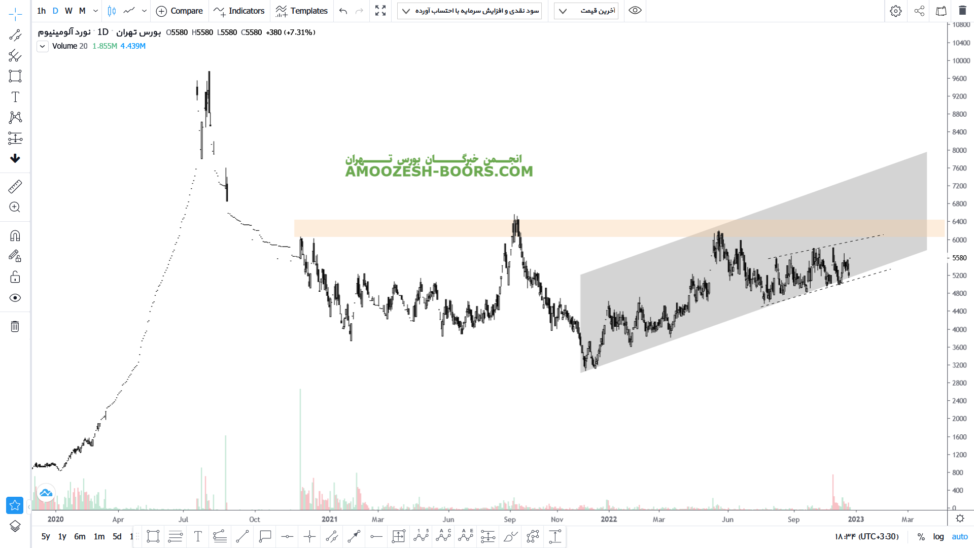 قیمت سهام فنوال در قالب یک کانال صعودی کوتاه مدت در حال رشد سمت ناحیه مقاومتی سقف کانال و همچنین ناحیه کلاسیکی ۶۳۰۰ ریال می باشد که میتواند در صورت شکست آن رشد خود را تا مقاومت بعدی خود یعنی ناحیه سقف کانال صعودی دراز مدت ادامه دهد.