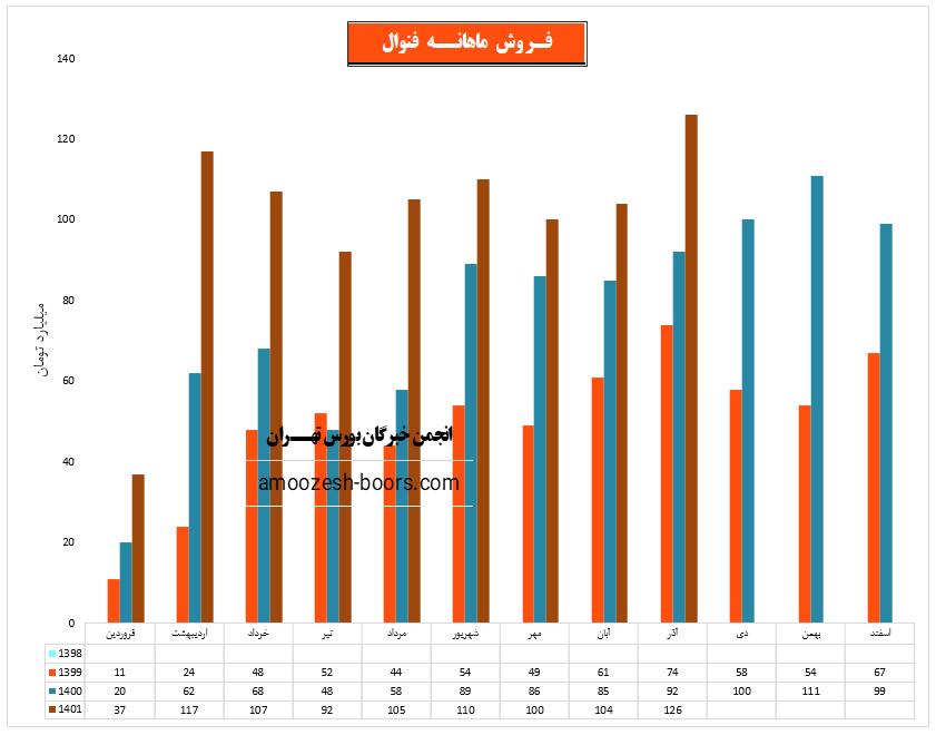 نماد فنوال در آذر ماه حدود بیش از 1/400/000 کیلوگرم از محصولات خود را به فروش رسانده که این میزان در مقایسه با حجم فروش ماه گذشته خود حدود 8% رشد پیدا کرده است.