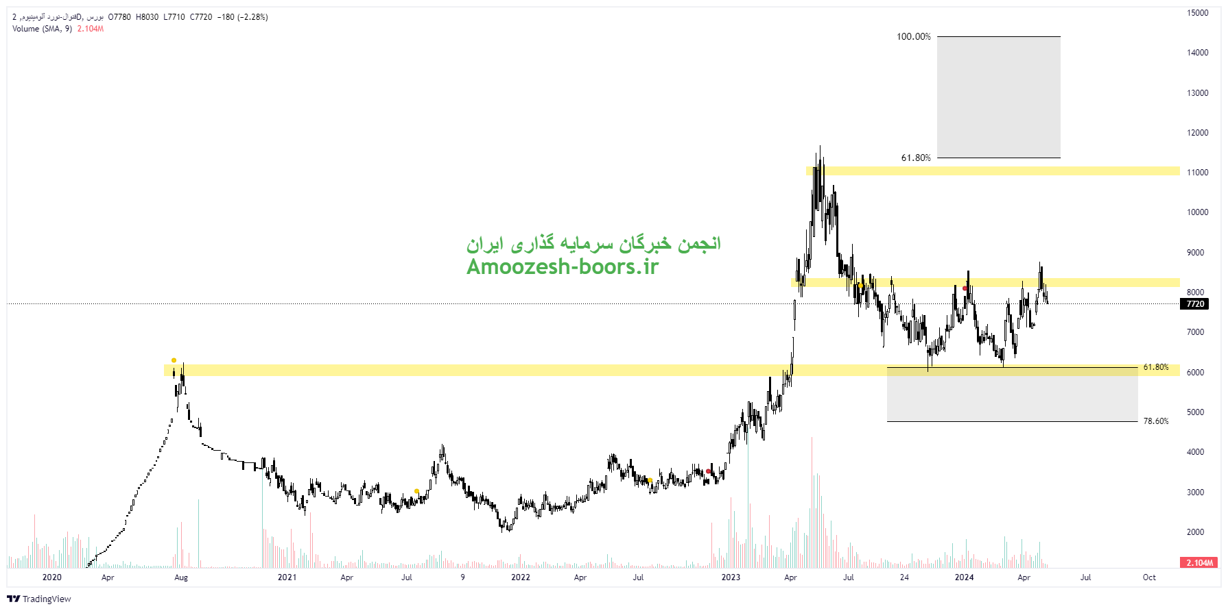 سهم فنوال با برخورد به مقاومت مهم ناحیه ۸۳۰۰ ریال واکنش منفی از خود نشان داده و لذا در مسیر اصلاح خود حمایت نواحی ۶۰۰۰ ریال را پیش روی خود دارد. لذا در صورت ایجاد تقاضا در کلیت بازار و عبور از مقاومت ناحیه ۸۳۰۰ ریال، سهم در مسیر صعودی خود مقاومتهای نواحی 11500 ريال و 14500 ريال را خواهد دید.